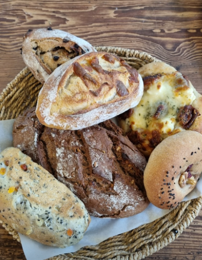 천연발효종으로 만든 소금빵과 깜빠뉴가 인기. 조용한 창가에서 커피와 함께하면 완벽한 여행 브런치.