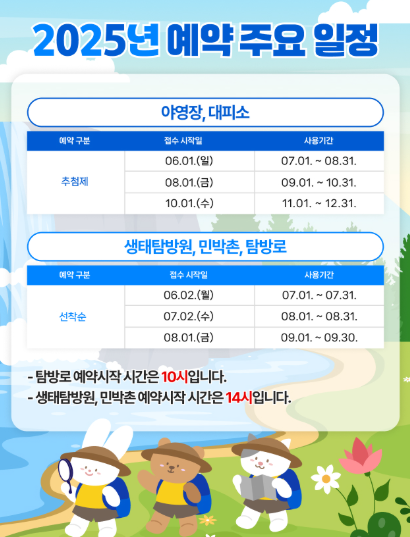 미리 준비해서 좋은 뷰의 야영장, 쾌적한 대피소, 알찬 탐방 프로그램까지 모두 누릴 수 있는 알찬 국립공원 여행을 떠나보세요 💛