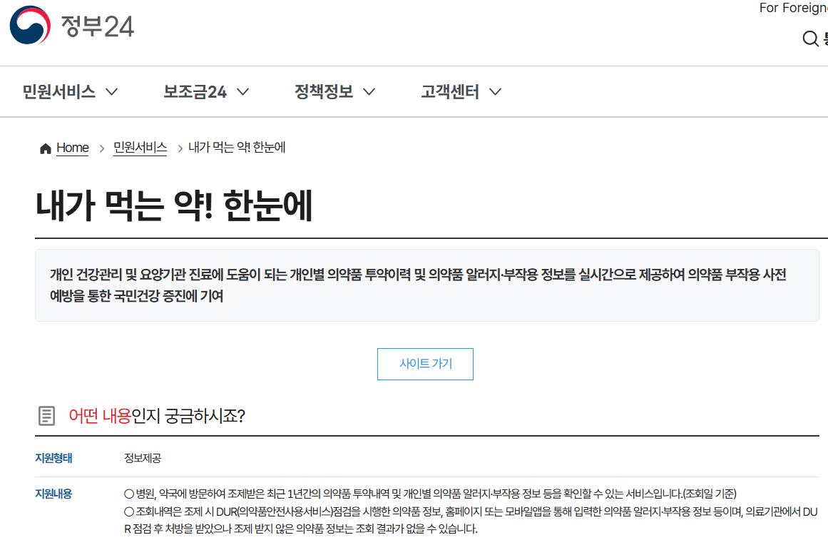 ‘내가 먹는 약! 한눈에’라는 복약 정보 서비스를 제공하고 있어요.