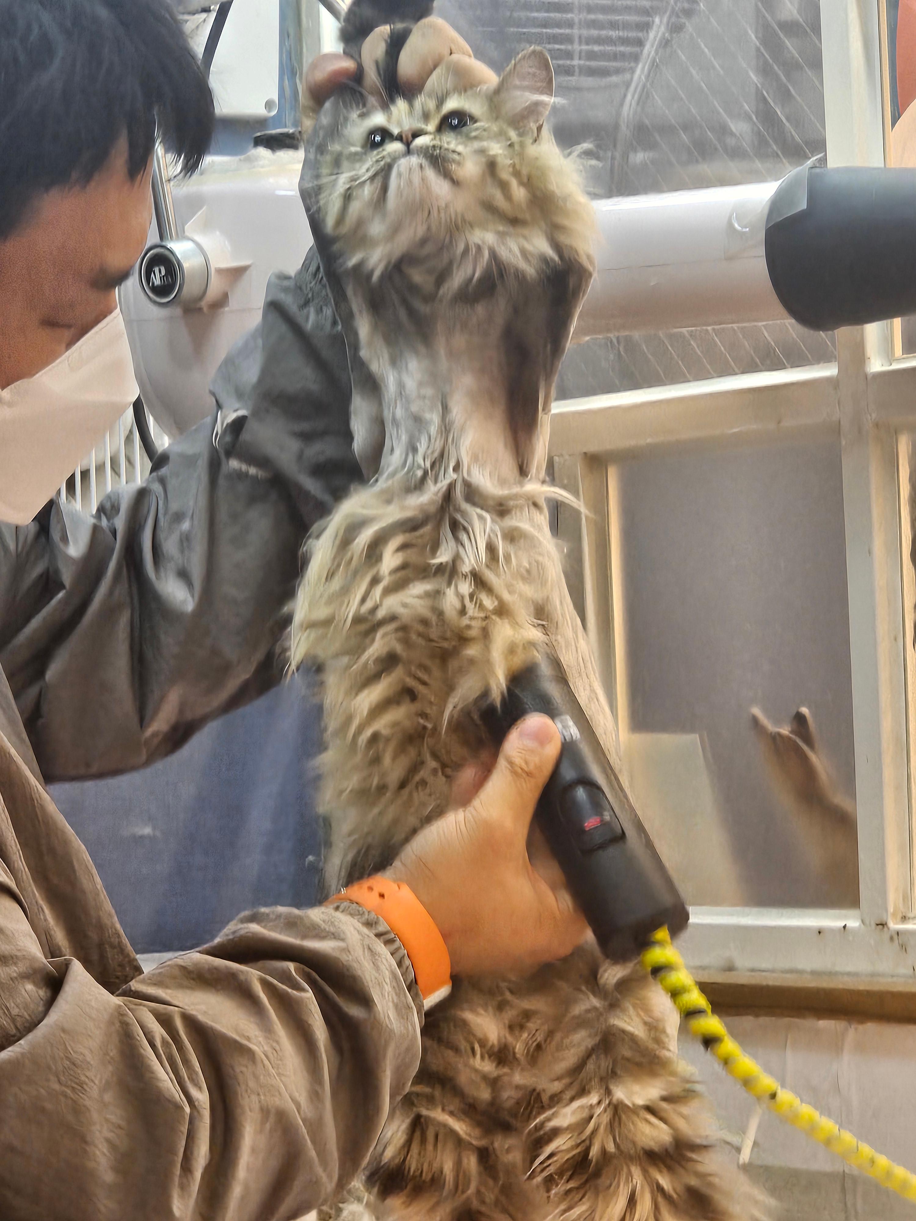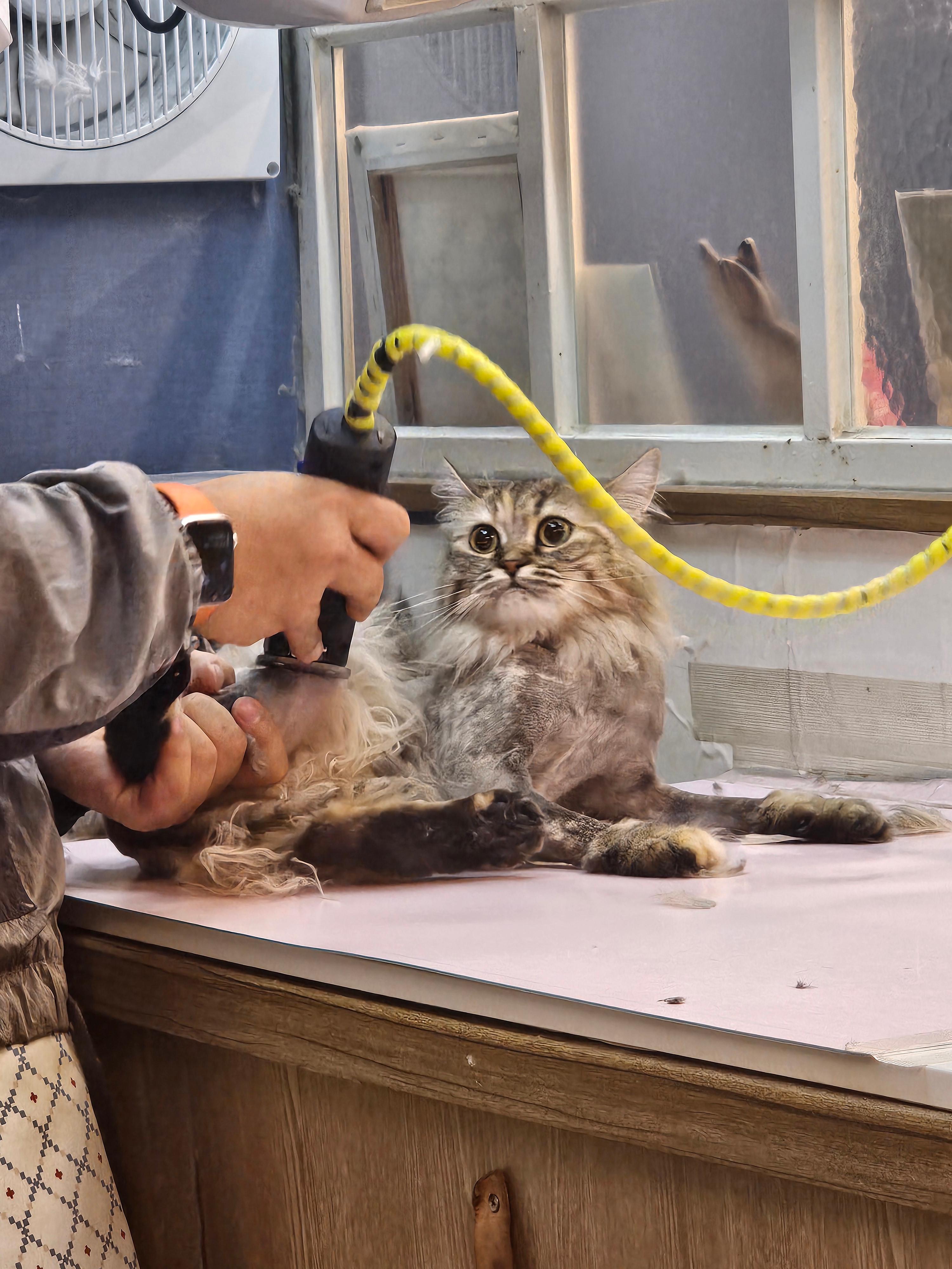 처음엔 미용이 고양이에게 스트레스를 주지 않을까 걱정했지만,