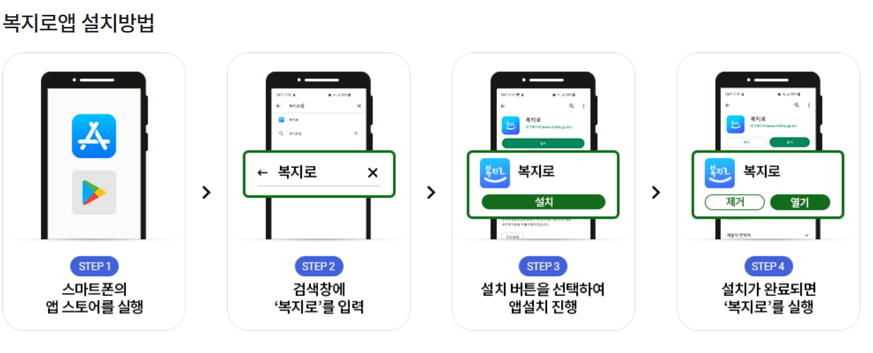 - 📲 구글플레이 / 앱스토어에서 ‘복지로’ 검색 후 설치