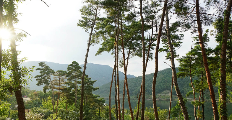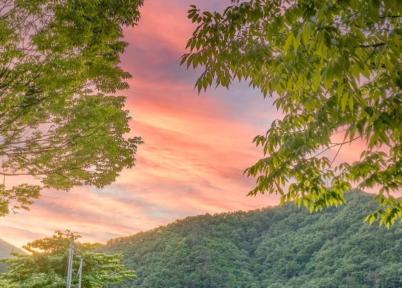 해 질 무렵, 숲 사이로 붉은 노을이 스며들 때의 풍경은 정말 ‘마음이 조용해지는 시간’ 그 자체입니다.