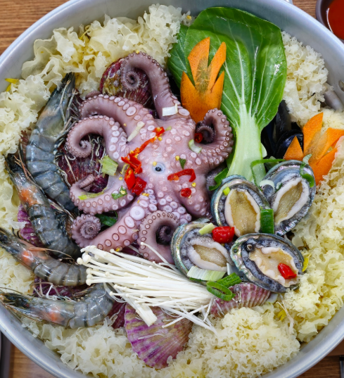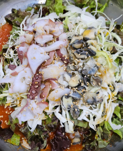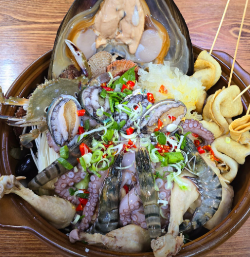 바다 산책 끝내고 먹는 해물칼국수는 진리! 진한 국물 + 넉넉한 해물 + 쫄깃한 면발에 몸이 확 풀리는 기분이에요.