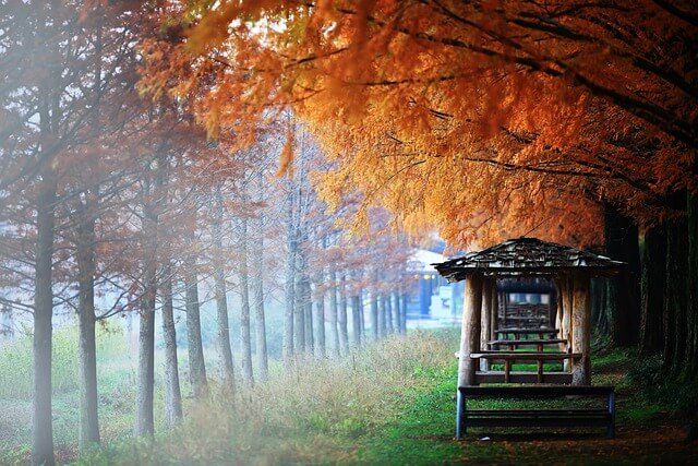 - 가을: 단풍길 트레킹, 메타세쿼이아 황금빛 가득